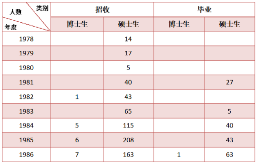 ▲1978-1986年研究生招生、毕业人数统计(来源:《西北电讯工程学院校史(1947—1987)》)