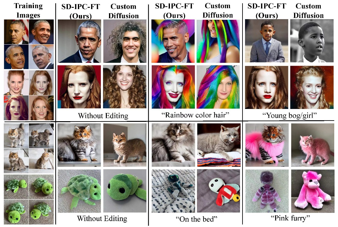 丁宇轩的论文《The CLIP Model is Secretly an Image-to-Prompt Converter》关注“文本到图像”生成模型StableDiffusion,通过对其特征空间的分析探究了模型生成原理,使用零成本闭式解实现了参考图像对输入文本的替换,将StableDiffusion模型转换为“图像到图像”生成模型,并拓展了其多模态输入能力(文本+图像)。相较于对比方法StableDiffusion-Reimagine,减少了20万GPU小时的训练时间,并提高了图像编辑效果。实验表明本文提出的闭式解可以作为模型微调的良好初始化,使用少量样本即可使模型关注不同的图像特征,并且可以在极少训练次数下完成定制图像生成任务。