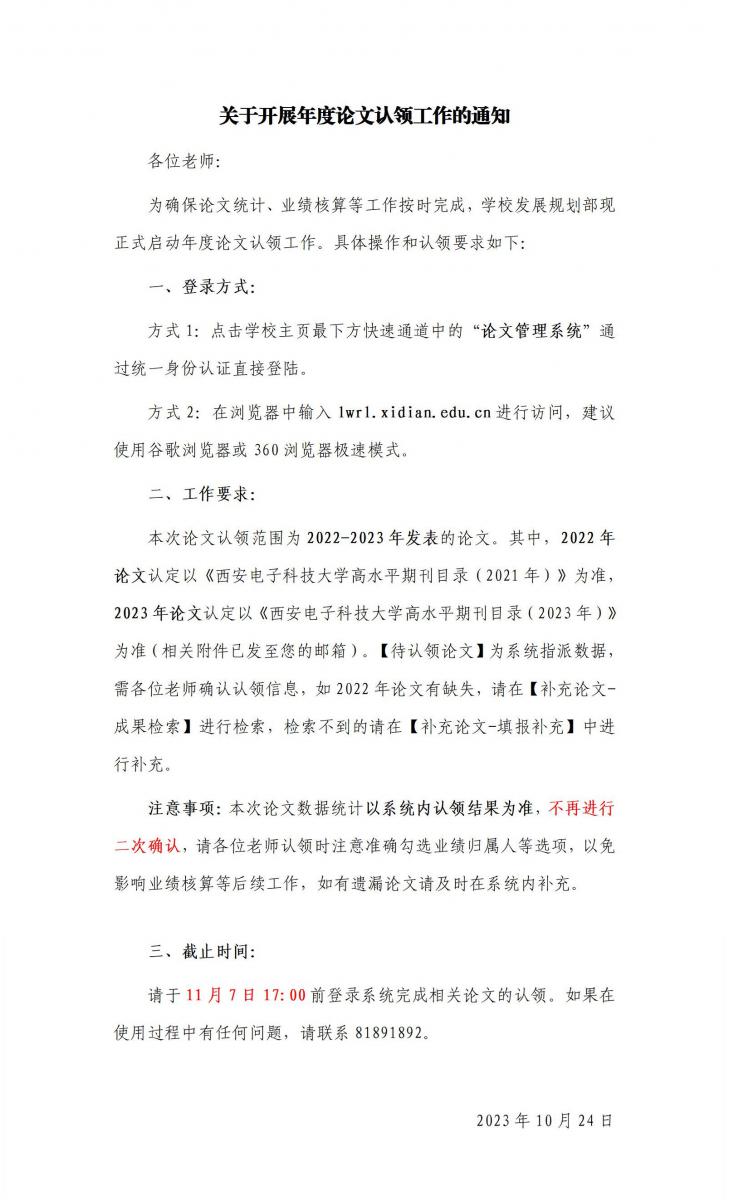 关于开展年度论文认领工作的通知
