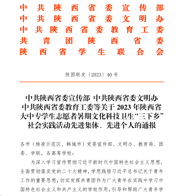 威尼斯暑期社会实践团队荣获陕西省“三下乡”社会实践活动优秀团队