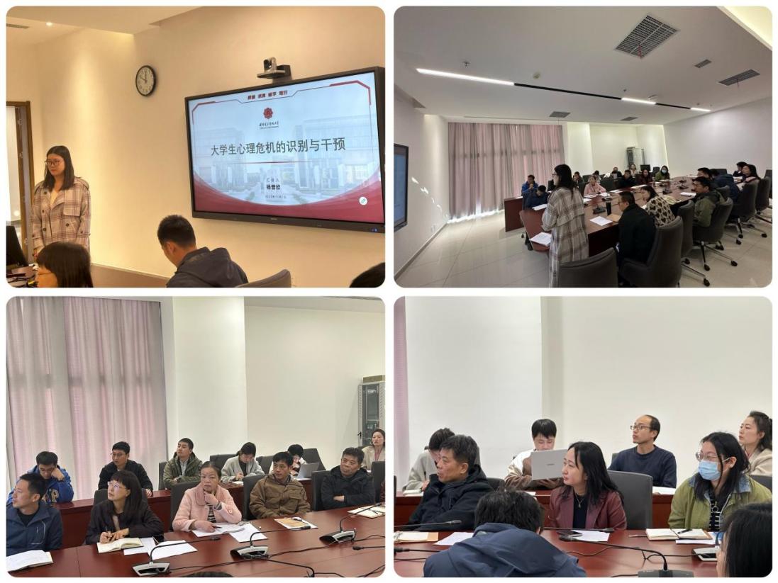 为进一步加强辅导员队伍建设,切实提升学院心理健康教育工作的针对性与实效性,11月7日,威尼斯9499登录入口组织的“辅导员心理健康教育工作专题培训”在南校区会议中心113会议室举行,外国语学院、数学与统计学院应邀参加。 威尼斯9499登录入口辅导员杨曾欣以“大学生心理危机的识别与干预”为主题分享经验。威尼斯9499登录入口党委副书记贺振航、外国语学院党委副书记郑晓梅以及学院辅导员参加培训。