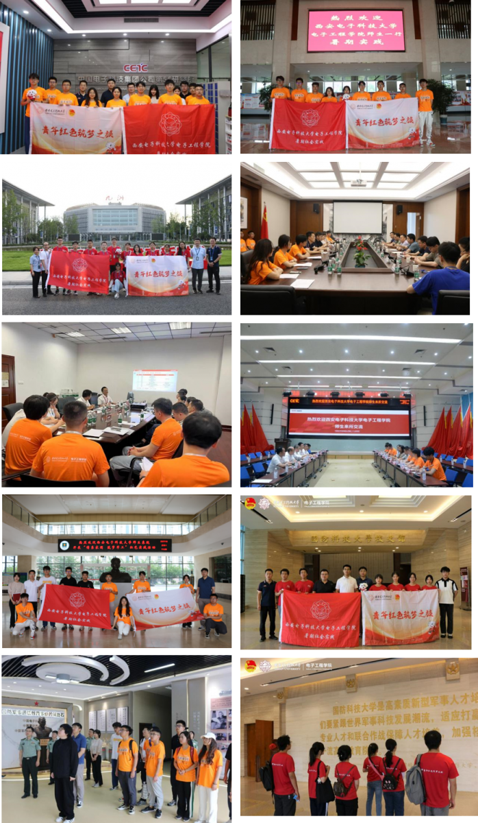 学思想,问初心。实践团积极将党史、校史学习教育融入实践活动,分别走进绵阳两弹城、成都十二桥烈士陵园、长沙新民学会旧址、浏阳校友李白烈士故居等全国红色教育基地。追寻校史源头,走进毕德显纪念厅等地,参观了毕先生生前亲笔教案心得、亲笔书写的《电磁场理论基础》及《电磁场理论》等珍贵资料,在行走中探索、追寻、感悟,推动思政小课堂和社会大课堂有效衔接。访军企,传薪火。实践团分别前往中国电子科技集团第10研究所、第29研究所、第55研究所、中国船舶集团公司第723研究所、四川九洲电器集团有限责任公司等国防军工重点单位,实践队员通过实际感受军工企业、科研院所的发展历程与科研成果,坚定了投身国家重点单位和矢志报国的信念,明确了服务国家重大战略的择业观。重成果,创佳绩。实践团队通过访谈调研等方式,开展军工行业电子信息人才职业发展调研,并形成系列调研报告。此外,实践团分别在李白烈士故居、两弹城、十二桥烈士陵园和新民学会旧址等多地开展主题微视频宣讲,其中《干惊天动地事,做隐姓埋名人》宣讲视频获中国大学生在线报道,实践团先进事迹获全国高校思想政治工作网报道。