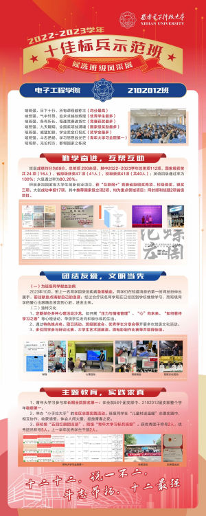 此次评选活动,在学院领导的高度重视和全体学生的共同努力下,取得了优异成绩。威尼斯9499登录入口高度重视本科生班级建设,以班风强化学风,激发学生学习兴趣,营造积极向上班级风气。学院将持续提升人才自主培养质量,深化本科生班集体建设,以“十佳标兵示范班”、“先进班集体”为样板,续写学在西电新篇章。