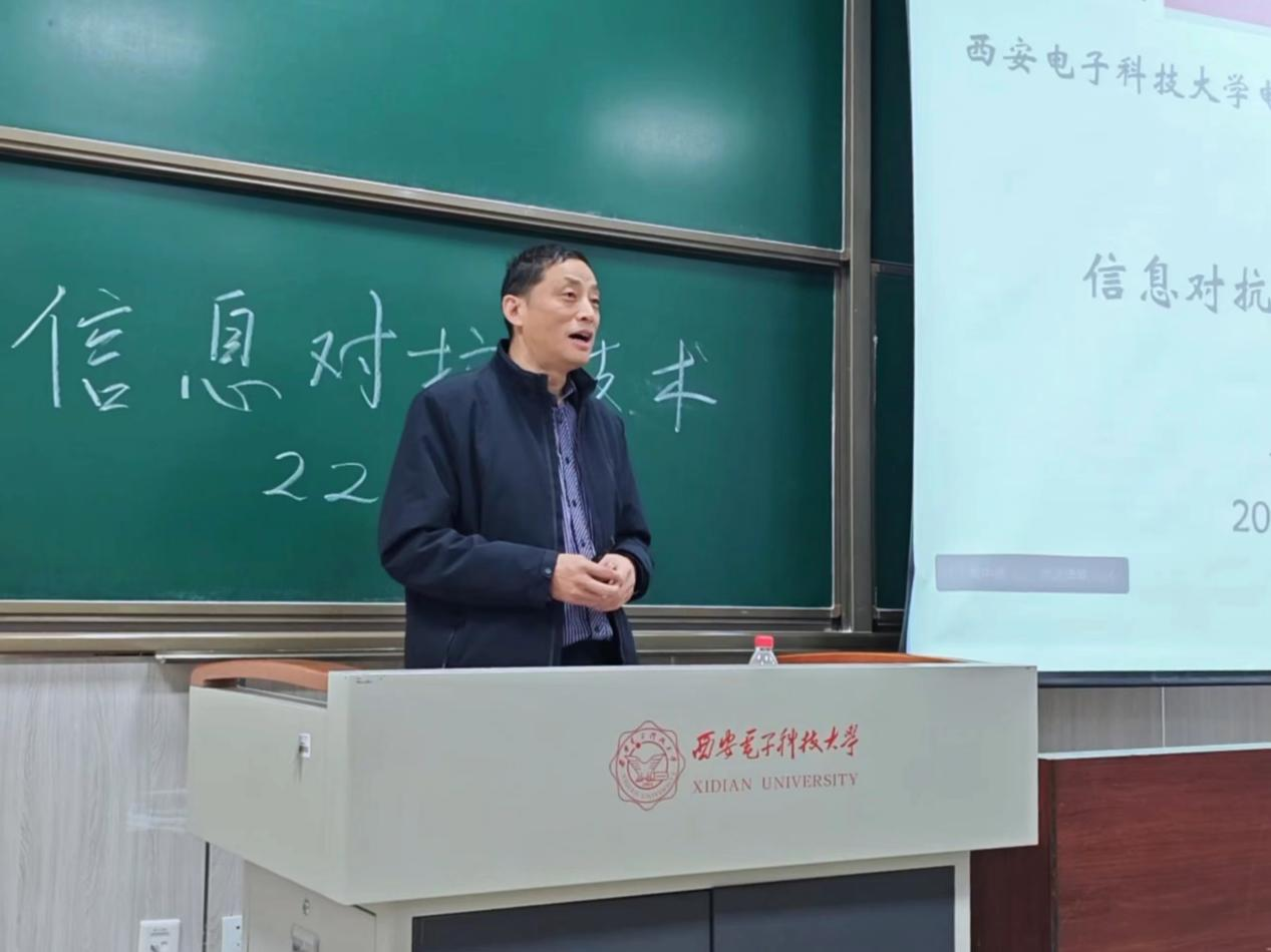 董春曦首先对2022级信抗专业的同学们表示热烈欢迎,以孙子兵法“瞒天过海”、“偷梁换柱”为引介绍了信息对抗源远流长的历史,并就专业内涵、发展历程、教学科研和课程设置等方面详细展开,建议同学们规划好学习时间、调整好学习方法、处理好同学关系和利用好学习资源,在专业学习中积极探索,在科学研究中行稳致远。