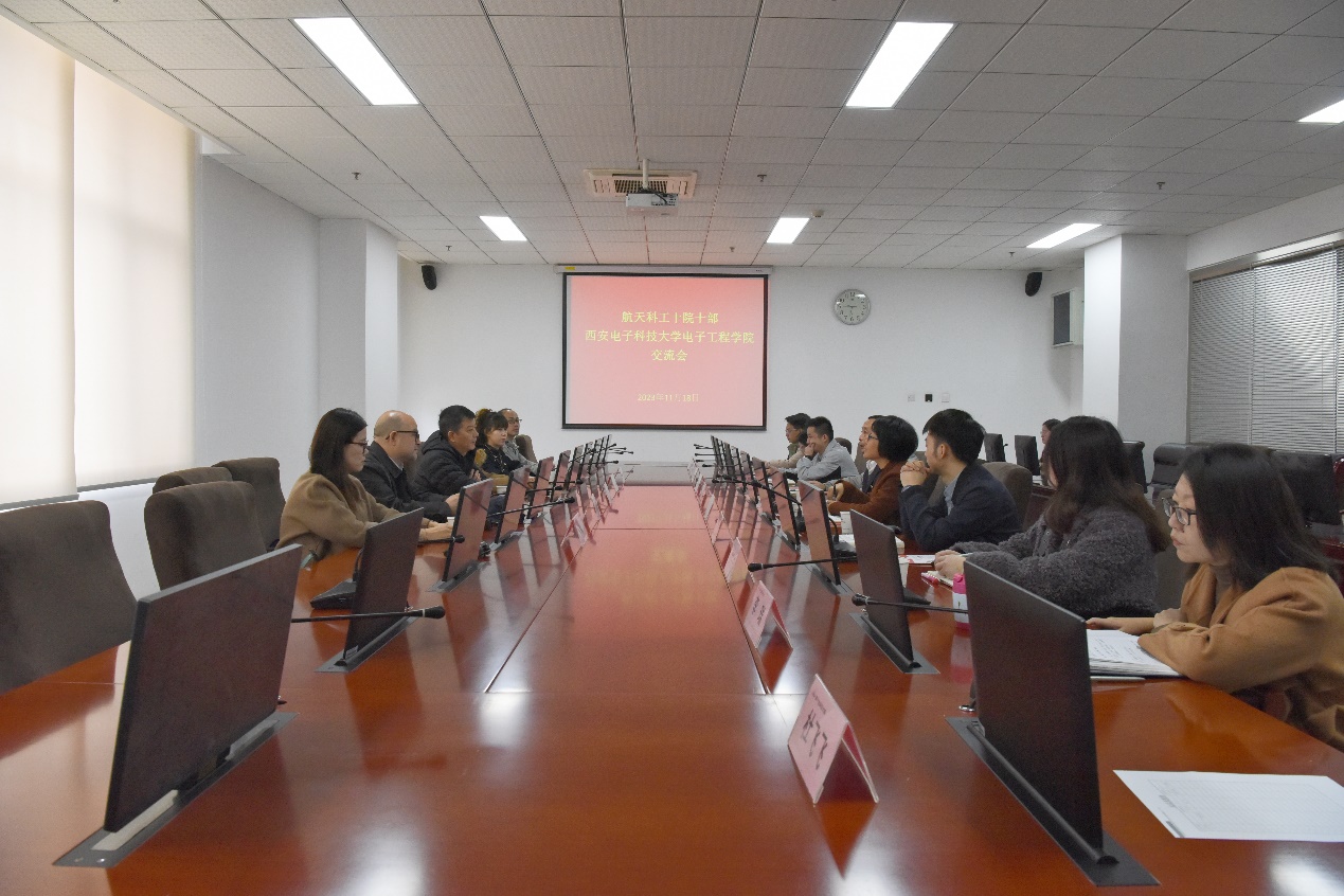 在与中国航天科工集团第十研究院第十总体设计部的座谈中,双方深入探讨党建引领、人才培养、科学研究、实习就业等方面合作。杨光暐表示,希望未来双方加强战略合作和校企联动,探索符合产业和行业需求的人才自主培养模式,同时学院要继续强化就业引领,服务国家战略需求,引导学生到国家重点单位、重点岗位实践锻炼。航天科工十院十部党委副书记田安贵讲到,西电威尼斯9499登录入口的学科专业优势和人才培养特色与十院十部高度契合,双方党委要探索建立长效合作机制,坚持“四个面向”加速科技成果向现实生产力转化,确保战略合作落实落地。