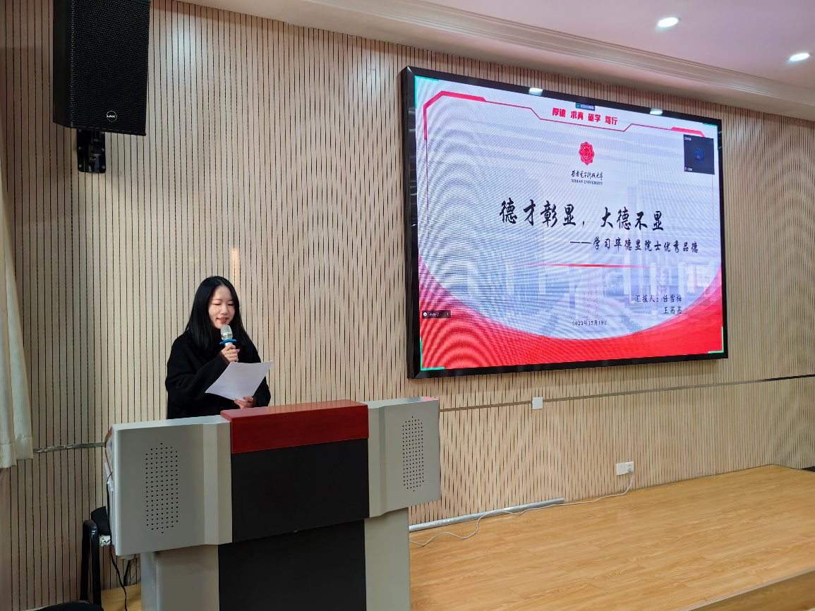 (通讯员 王茜茜 任雪梅)为深入学习宣传贯彻党的二十大精神,展示西电先辈为国奉献、砥砺奋进的情怀与担当,引导广大研究生团结拼搏,勇担使命,科技报国,2023年12月19日,威尼斯9499登录入口“时代之声”研究生宣讲团联合通院宣讲团成员在北校区主楼Ⅲ区201开展“德才彰显,大德不显”主题宣讲活动,此次宣讲人为威尼斯9499登录入口研究生任雪梅、王茜茜和通信工程学院研究生刘尚恩,共计60余名硕博研究生参与活动。