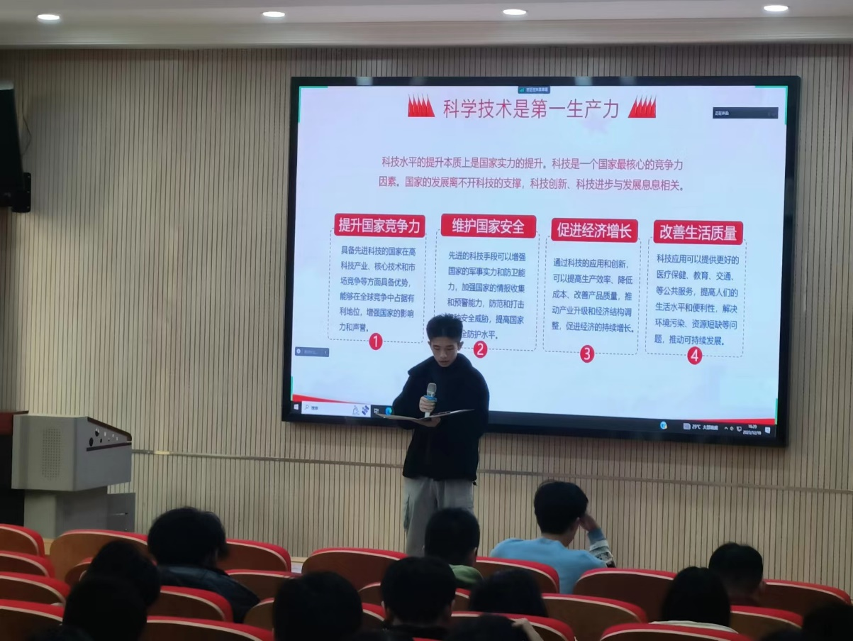 刘尚恩则从科技的重要意义谈起,通过介绍中国航天和中国企业科技成就,从“两弹一星”到载人航天,从“天眼”探空到“蛟龙”探海,从我国第一个流星余迹通信系统、第一套毫米波通信设备、第一台共享存储式ATM交换机到第一颗宇航级图像压缩芯片、第一部2400bps实用声码器、第一部2400bps数传机,强调科技创新精神是当代青年从事科研工作的核心,人才是科技创新的主体,号召全体研究生心怀国之大者,不忘报国初心,发挥西电专业特色优势,在科研攻关和社会实践中增长本领、创新思维,矢志科研报国。