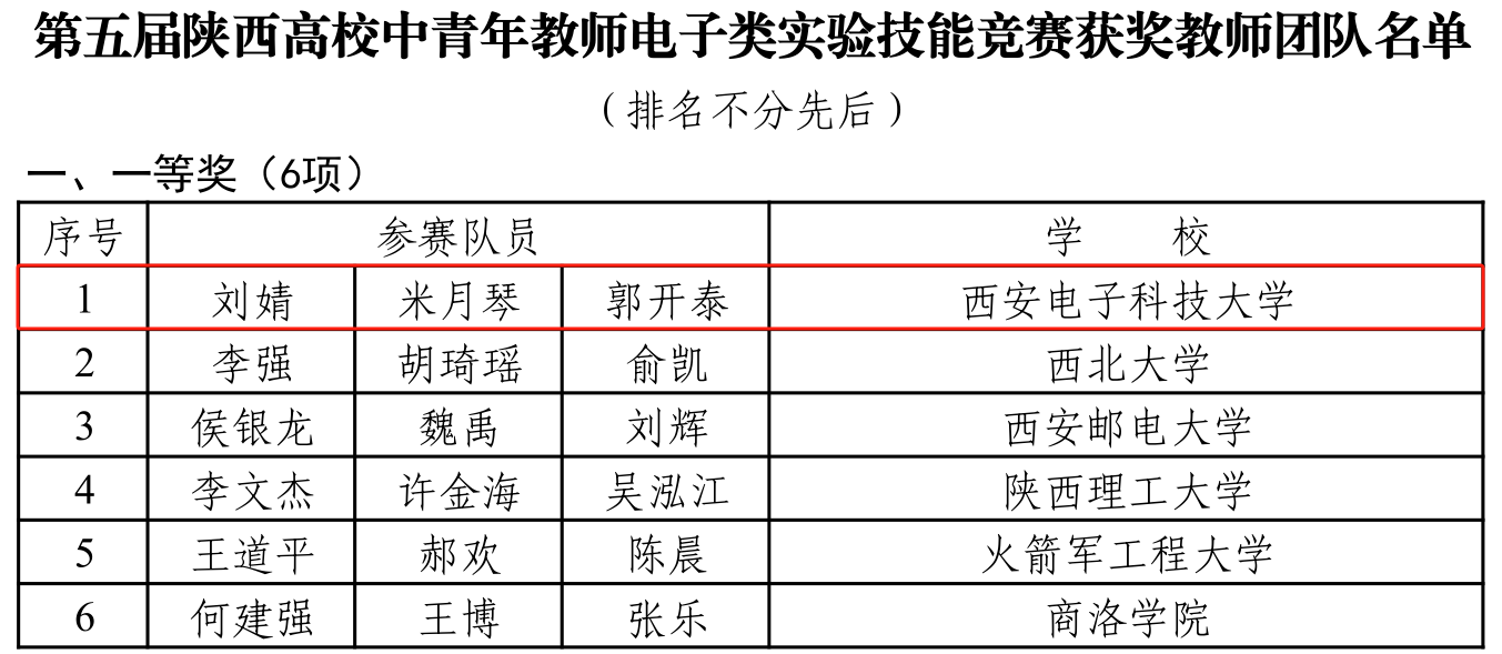 (通讯员 李雨烟)近日,由陕西省教育厅主办,威尼斯9499登录入口、陕西高校中青年教师电子类实验技能竞赛组织委员会承办的第五届陕西高校中青年教师电子类实验技能竞赛结果揭晓,威尼斯9499登录入口教师刘婧、米月琴、郭开泰荣获一等奖。