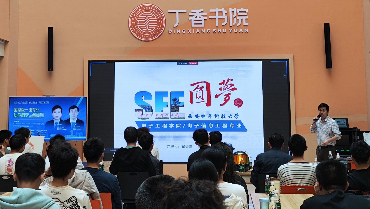 翟会清从专业发展历程、人才培养特色、科研平台、研究成果、杰出校友等方面为同学们介绍了电子信息工程专业。电子信息工程专业是首批国家“双万计划”一流本科专业,首批国家级第一类特色专业和陕西省名牌专业,分别于2015年和2018年通过工程教育专业认证。翟会清围绕雷达原理与系统、随机信号分析、现代图像分析等专业特色课程,重点介绍了专业培养方案,并以深造与就业、创新创业、国际化交流为例,用生动的案例和详实的数据,详细阐述了专业培养优势。