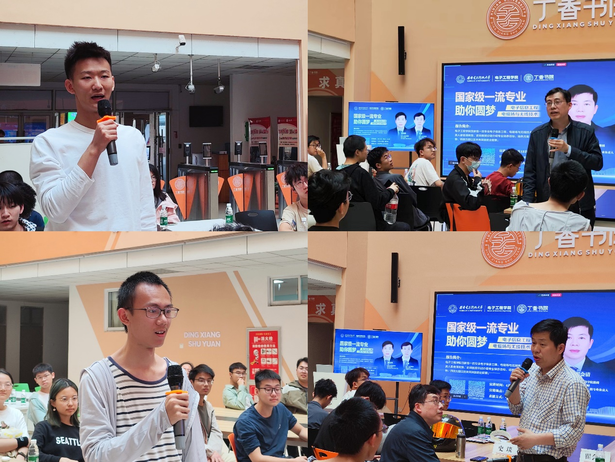 在互动交流环节,同学们就学业规划、专业分流等问题提出疑问,两位新生导师耐心解答。翟会清表示,大一期间应重视高等数学、线性代数等课程,夯实数理基础,并根据个人兴趣,拓展学习专业知识,培养动手实践能力和创新精神。史琰从课程和未来发展方向阐述了两个专业的区别,希望同学们对各专业要有全面、清晰的认知,在专业分流时做出理性选择。