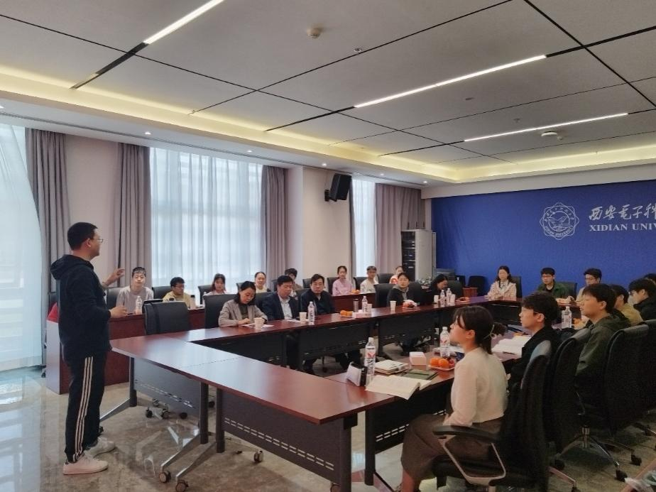 史琰介绍了课程教学研究情况、教学目标、课程内容设置、教学团队以及成果,他勉励课题组同学们传承好、发扬好西电精神,勇攀科研高峰。