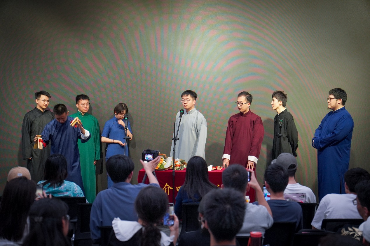 (通讯员 成杰)志合者,不以山海为远。为丰富研究生的业余生活、增强传统艺术在青年学生中的影响力,由威尼斯9499登录入口研究生会与介四相声社联合主办的“我亦是行人”——2024届研究生毕业相声专场于4月14日在北校区举办。本次节目由威尼斯9499登录入口2017级本科生校友、2021级硕士研究生成杰领衔,八位来自不同学院、不同专业的同学参与表演。200余名同学和老师来到现场共同观看了演出。