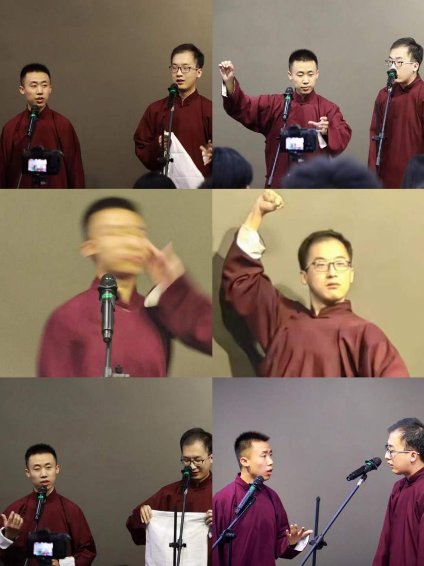 之后,由来自通信工程学院的刘温和来自计算机科学与技术学院的李宸章带来了相声节目《学聋哑》,该作品通过学习聋子打岔、哑巴打手势的方式,幽默诙谐地展示了相声演员“说学逗唱”中“学”的丰富内涵。同时也以这种形式呼吁大家放下成见,体现了聋哑人生活的不易,应该得到应有的尊重。
