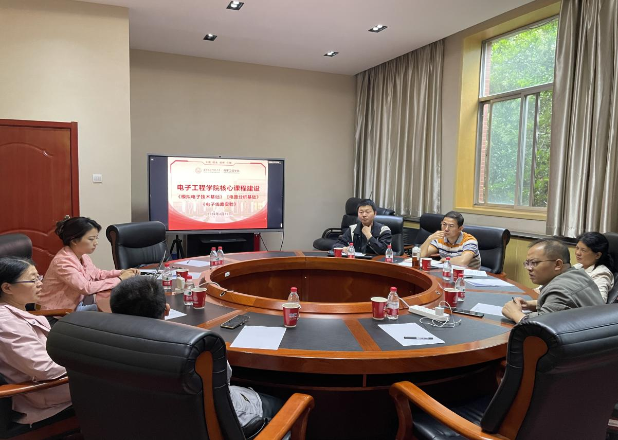 上午,《模拟电子技术基础》、《电路分析基础》和《电子线路实验》三门课程的负责人及团队成员参加了研讨。会上,各课程组老师认真梳理课程知识体系架构和知识点相互关系,围绕课堂授课方法、考核方式、线下综合性实验、课内验证性/认知性实验需要用到的仿真/远程工具等方面展开讨论。《模拟电子技术基础》课程负责人王新怀详细介绍了模电理论与实践教学内容及模式方面的改革与探索,把仿真实验和远程实验融入课堂教学中,让学生更好地发挥主观能动性。《电路分析基础》课程负责人刘海霞阐述了基于课程改革如何提升课堂教学质量和培养学生自主学习能力,打造“科-教-文-赛”融通课程体系改革。《电子线路实验》课程团队宗汝、邓军和徐少莹三位老师就教学内容改革、教材建设、实验教学改革、发展趋势等进行了热烈研讨。