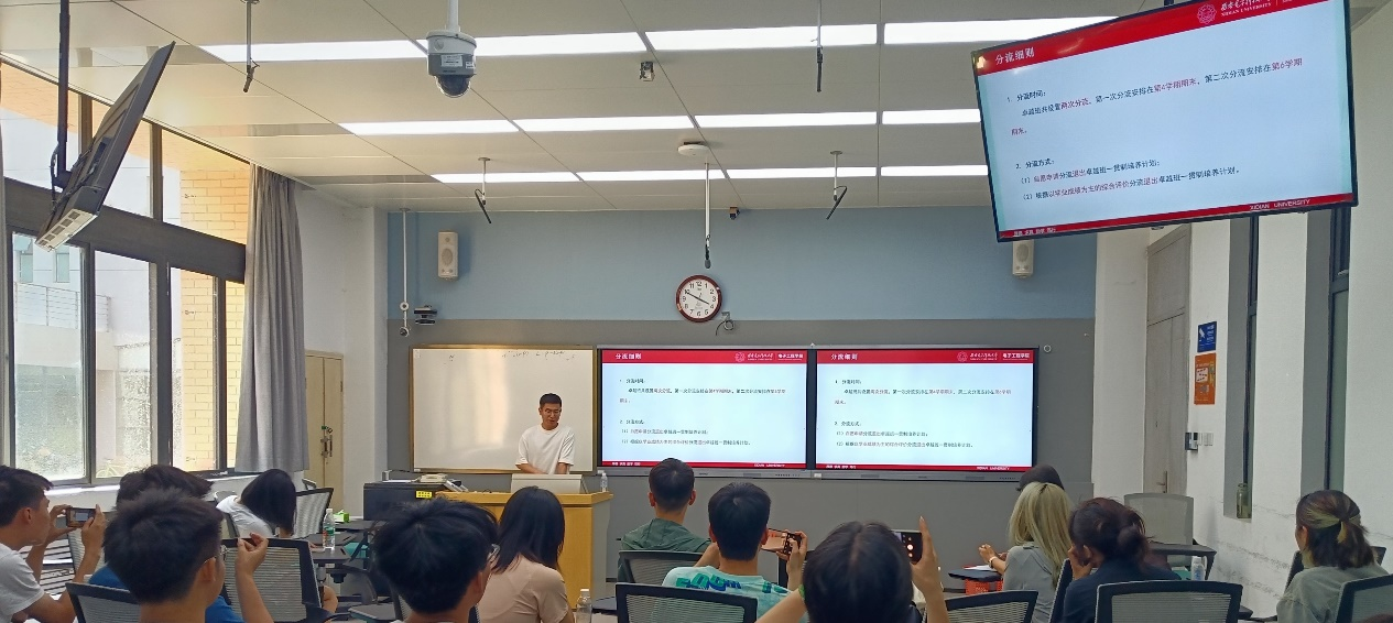 随后,李雨烟从分流时间、分流去向、分流细则等方面向同学们介绍了卓越班的分流政策。他表示,分流基于学生的个人意愿、学业成绩和综合素质开展,希望同学们根据个人兴趣、学习情况,提前做好规划,更好地面对分流工作。