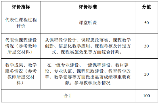 评审将参照代表性课程的学生评教、同行评价、督导评价、智课平台AI评价,教师的教学成果、教学服务等指标,对教师课堂教学质量进行综合评价。