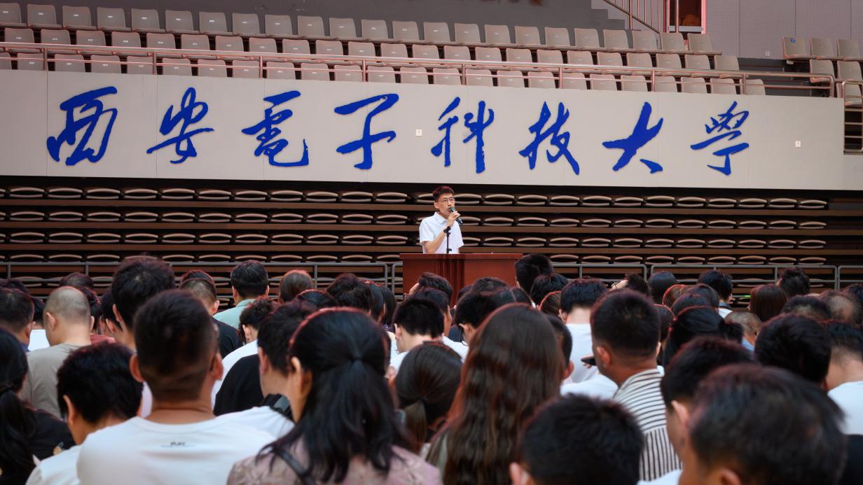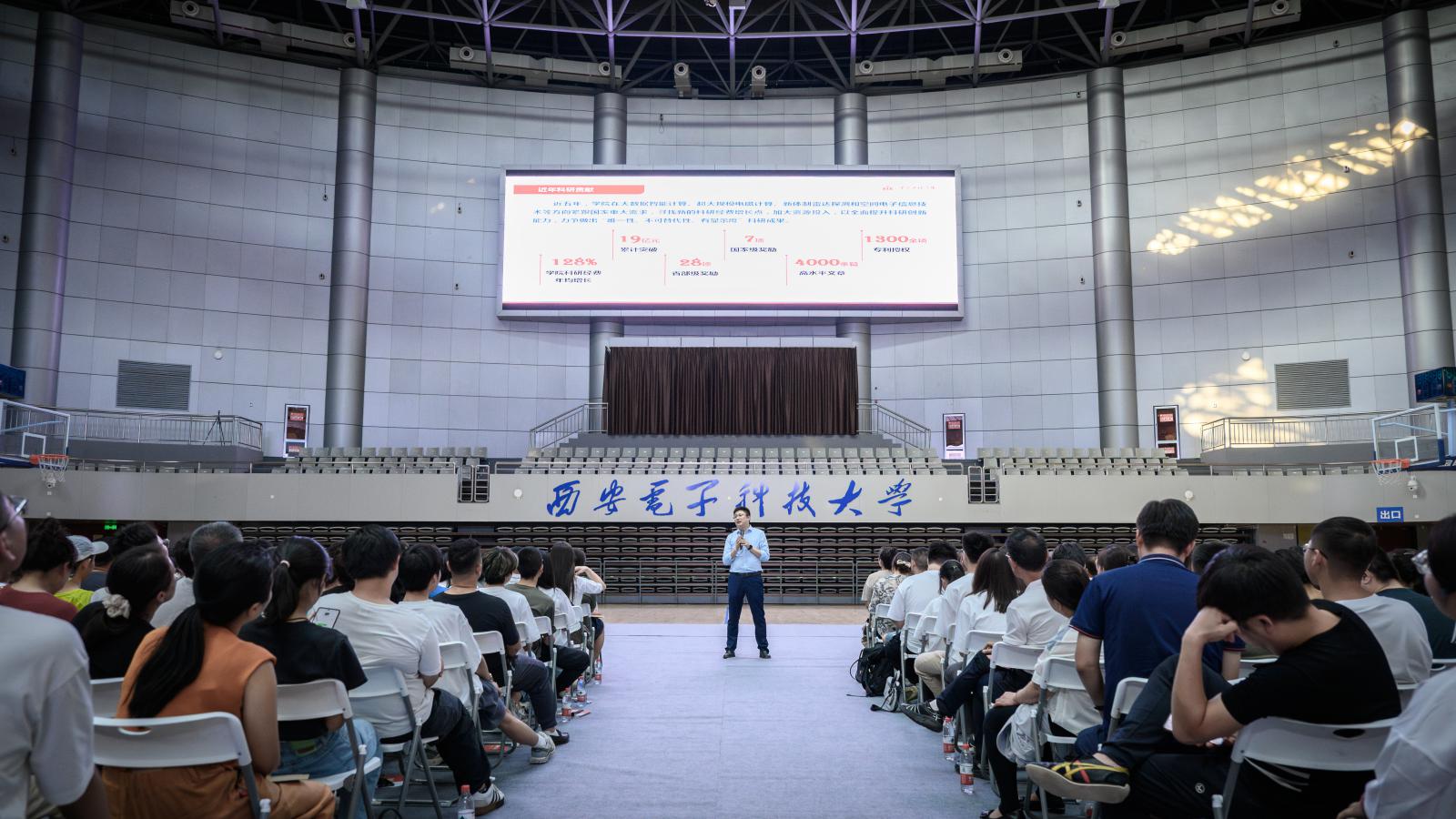 学院执行院长丁金闪代表学院向来自全国各地的优秀学子表示热烈的欢迎和诚挚的祝福。在学院介绍报告中,他纵向叙述办学历史、横向阐释科研成果、精选优秀校友、典型学子,从学院基本概况、办院特色、人才培养、科学研究、就业前景等方面向新生及家长作了详细的介绍。丁金闪勉励新生们珍惜在西电求学的时光,求真学问、练真本领,努力成长为可堪重任的信息尖兵、强国先锋。