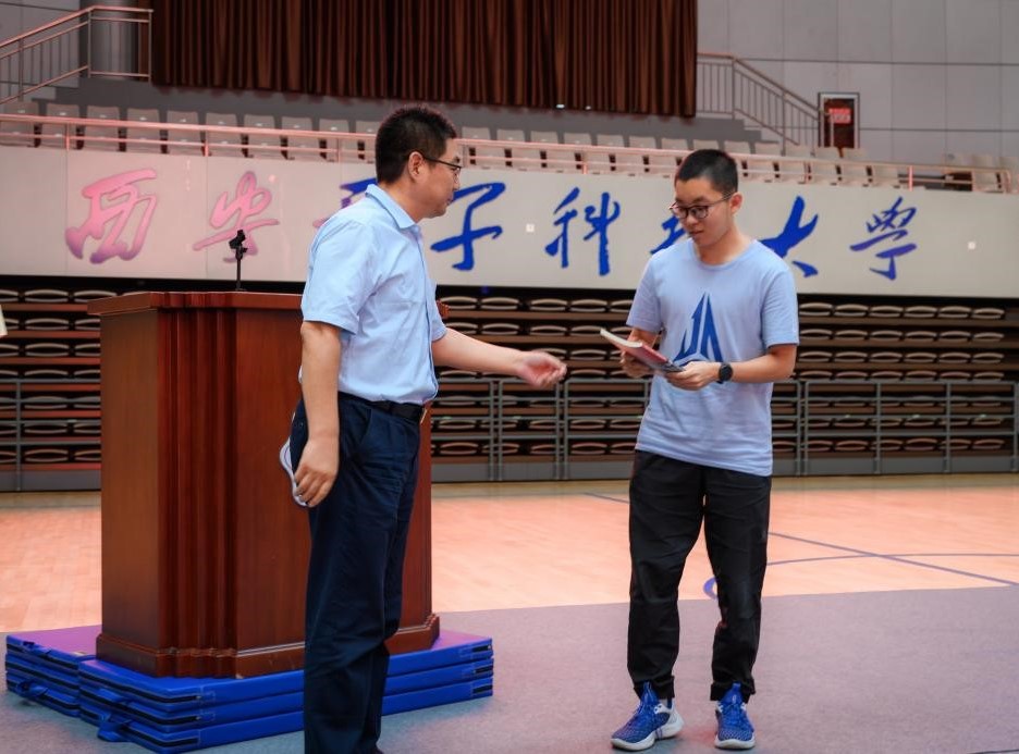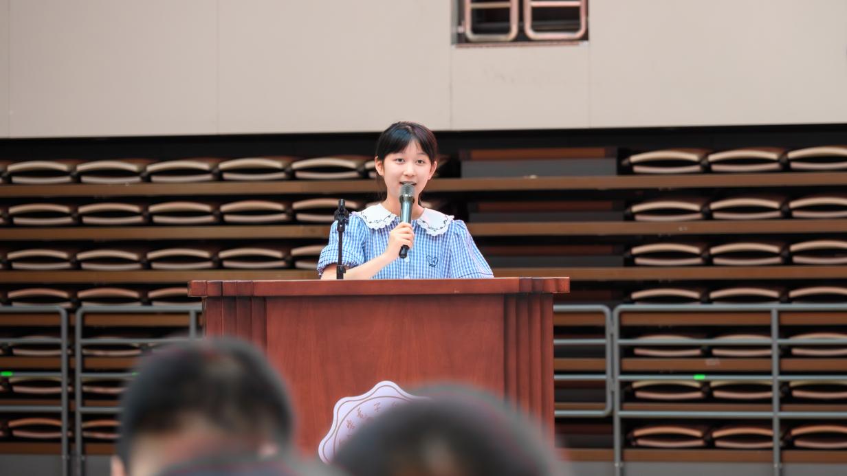 新生代表谭佳祯在发言中满怀憧憬地展望了大学生活,并倡议全体新生要坚定信仰、锤炼品格、磨炼意志、学习知识,放飞青春理想,勇攀科学高峰。