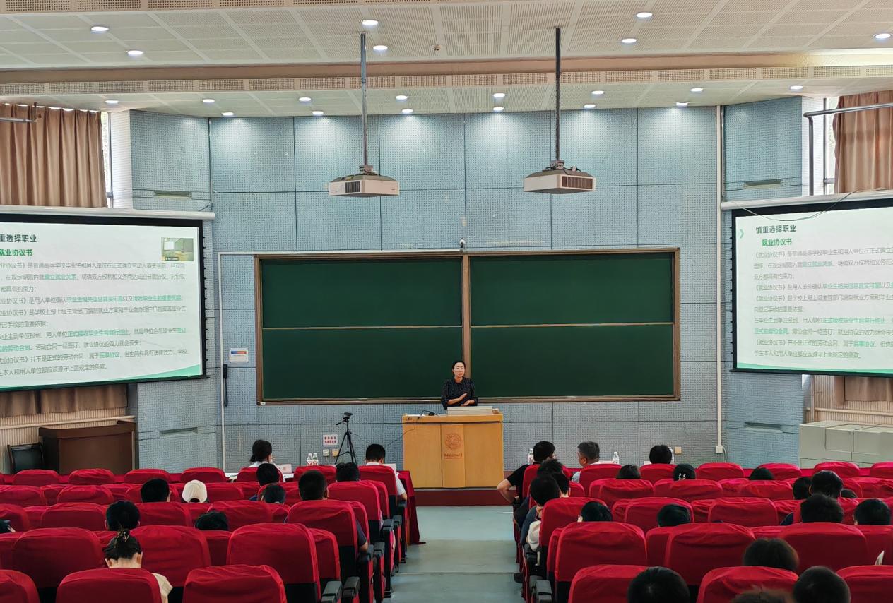 詹奉珍为学院2025届研究生开展就业形势解析与应对指导。她分析了2025届毕业生面临的就业形势,详细介绍了就业协议、签约过程中的要求与注意事项,提醒同学们在求职签约过程中务必全面了解、慎重决策。同时,她鼓励研究生抓住校招关键期,积极参与线下招聘会。她表示,只有通过主动思考和锤炼扎实的科研能力,才能在充满变数的就业环境中把握住唯一确定的成功之道。