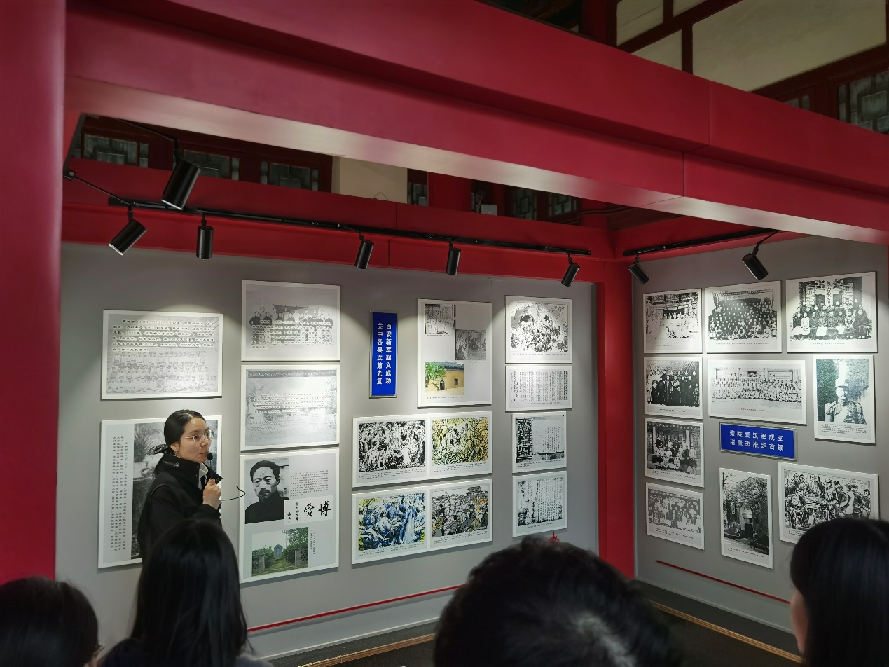 在讲解员的带领下,学员们参观了忠烈祠内的革命公园历史图片展,详细了解了革命先烈在战争年代艰苦奋斗、不畏牺牲的英雄事迹。通过观看历史文物,学员们深刻体会到先烈们的崇高信仰和坚定意志。随后参观了园内革命亭、烈士纪念碑亭、杨虎城雕像等建筑,革命公园的建成填补了西安市近现代红色革命纪念性城市公园的空白,是北方近现代园林中典型的纪念性文化公园,作为重要的抗战纪念地,革命公园不仅记录了那段光辉岁月,也激励新时代青年不忘初心、砥砺前行。