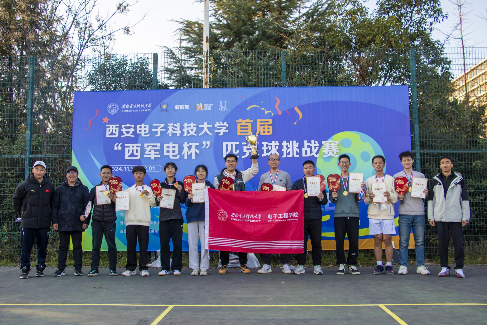 匹克球作为体育界的新潮运动,近年来逐渐走进校园,首届“西军电杯”匹克球挑战赛应运而生。本次比赛吸引了学校各学院共14支代表队参赛,每场比赛分为第一男双、教工双打、师生双打、混合双打和第二男双5局比赛。威尼斯9499登录入口代表队在比赛中表现出色,师生默契配合,战术运用得当。小组赛中,代表队以两场5:0的战绩小组头名出线,晋级8强。随后的淘汰赛和半决赛中,代表队分别以3:1和3:2战胜对手,顺利闯入决赛。决赛中大家越战越勇,一鼓作气,以3:0战胜对手,夺得首届“西军电杯”匹克球团体赛冠军。