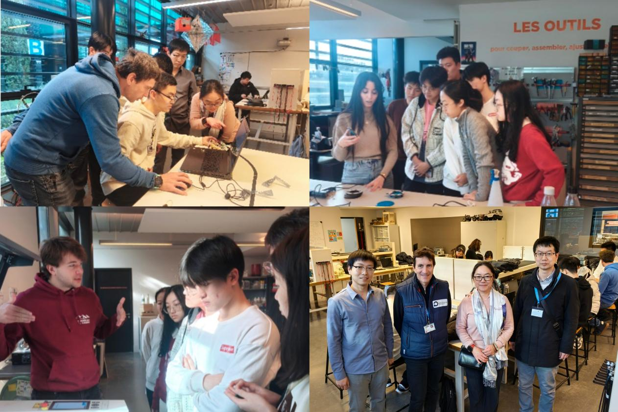 在“智能机器人实验室”,21名学生自学编程、分组合作,从理论学习到实践制作,顺利完成智能记忆体开发项目。同学们在教师指导下完成电路设计、功能验证、3D模型打印和焊接封装等环节,深度学习和体验从设计到制作的全流程产品开发,最终全部完成项目任务。实训期间,同学们自学Arduino编程语言,学习使用基于不同材质的3D打印和激光切割设备,提高了动手能力,丰富了实践经验。校长Alexandre教授走访实训现场,欢迎威尼斯访学师生,查看科创训练成果。