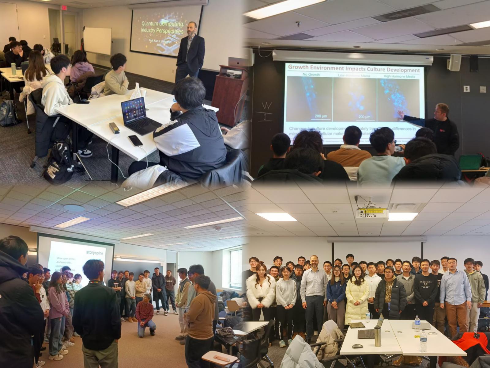 作为全球科技创新的顶尖学府,麻省理工学院在人工智能、电子信息等领域拥有世界一流的科研平台与教学资源。项目期间,MIT微电子系统实验室主任Karl Berggren教授以“量子计算产业前景与超导电子学原理”为主题,系统阐释了对偶性原理与超导电路设计,学生通过实验模拟深入掌握超导技术的核心应用。电子研究实验室首席科学家Luis Fernando教授则聚焦“高电场现象与增材制造技术”,结合微流控实验与四极质谱分析,引导学生探索前沿交叉学科的研究方法。此外,MIT电气工程与计算机科学高级讲师TonyEng通过互动式教学,全面提升学生的学术英语表达与科研演讲能力。在结业汇报中,学生围绕“人工智能”与“射频工程”两大主题进行展示,MIT专家现场点评,进一步强化了学生的逻辑思维与实践能力。