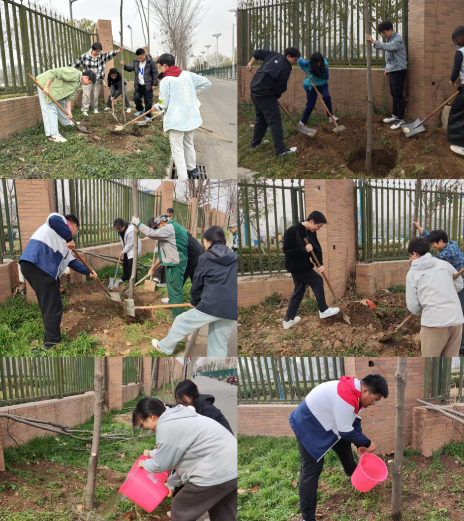 南校区南操场西侧,在后勤保障部工作人员的指导下,师生们三五成群,分工协作,挥锹挖坑,扶树培土,提桶浇水,现场一片热火朝天的景象。尽管春寒料峭,但大家的劳动热情丝毫未减,每个人都用自己的双手为校园增添一抹新绿。