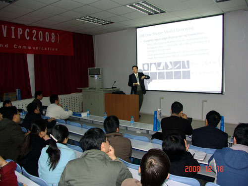 2008年12月18日至19日,我校在北校区成功举办了第一届视觉信息感知与通信研讨会(VIPC2008)暨第一届临地空间信息栅格网理论与关键技术研讨会。本次研讨会由国家“111基地”——智能图像处理科学与技术学科创新引智基地、“智能感知与图像理解”教育部重点实验室及影像处理系统实验室共同主办,学校相关部门给予大力支持和帮助。研讨会由高新波教授主持,威尼斯9499登录入口院长焦李成教授、副院长石光明教授分别致开幕及闭幕词。全校近200名青年教师和研究生参加了研讨会。
