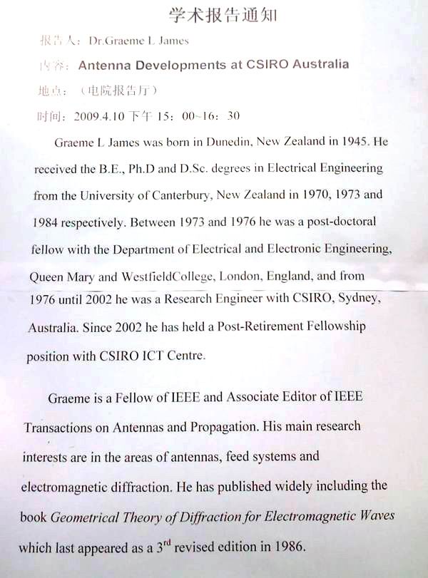 Dr.Graeme L James天线学术报告会