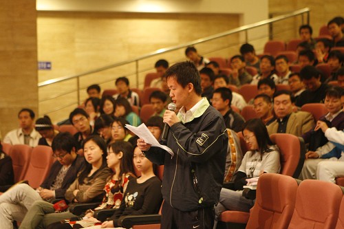 当天早上9时许,南校区大学生活动中心小剧场已座无虚席,在一片热烈的掌声中,精神矍铄的孙皓晖先生走上讲台,开始了近三个小时的精彩报告。