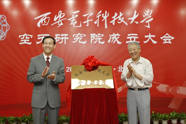 随后,在热烈的掌声中,孙家栋院士和段宝岩校长为我校空天研究院成立揭牌。