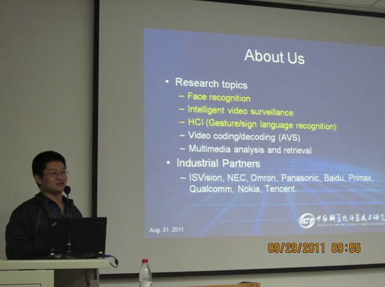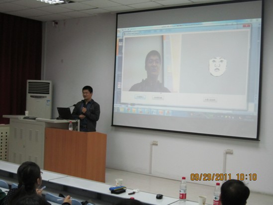 随后,山世光研究员做了题为“Face Recognition:Quo Vadis?”的学术报告。山博士简要介绍了他所从事学术领域的研究现状及发展前景,重点为我们展示了他所在的研究小组的在人脸检测、识别等方面的实时演示系统。