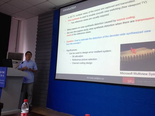 应威尼斯9499登录入口、航天电子信息研究所,陕西省电子协会石光明教授的邀请,加拿大Simon Fraser大学梁杰教授于7月10日来校讲学访问,在主楼II区227报告厅作了题为”Graphical Model-based View Synthesis Distortion Estimation“,以及”Approximate Message Passing-based Compressed Sensing Reconstruction with Generalized Elastic Net Prior”的学术报告,介绍了自由视角合成及压缩感知相关理论和方法,以及最新的研究进展。