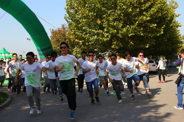 起跑仪式开始前,一段活力四射的啦啦操表演为选手们加油助威。本次彩虹跑活动共设3个撒粉区和2个彩绘区,跑道起点在南校区南操场,途径丁香公寓、家属院、竹园公寓及海棠公寓,全程5公里。近千名选手分成22个小组参加比赛。选手跑步经过撒粉区时,工作人员将红、黄、绿、蓝、紫等各色颜料喷洒在选手身上;经过彩绘区时工作人员用彩笔在运动员脸上涂鸦各式图案。