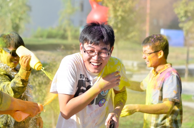 所有选手跑完全程5公里后,在留影墙前留影纪念。随后,终极color派对正式开始,欢快的乐曲为选手的胜利归来庆祝喝彩。每个人身上像调色板一样色彩缤纷,伴随着音乐的节奏,共同抛洒彩粉,将整个会场推向最高潮,整个南操场上空交织着五彩斑斓的青春色彩。参加完活动的威尼斯张宁祥老师最后说到:“color run是我在西电参加过很多活动里最令人开心、最能激发热情、最能展现活力的活动之一。五公里跑步的过程本身就能带给人们正能量,再加上脸上衣服上身上炫目的颜色、激扬的乐队演出,每个人脸上都有开心的笑容,最后的集体狂欢尤其令人印象深刻,所有人都肆无忌惮地挥洒着青春的色彩。”