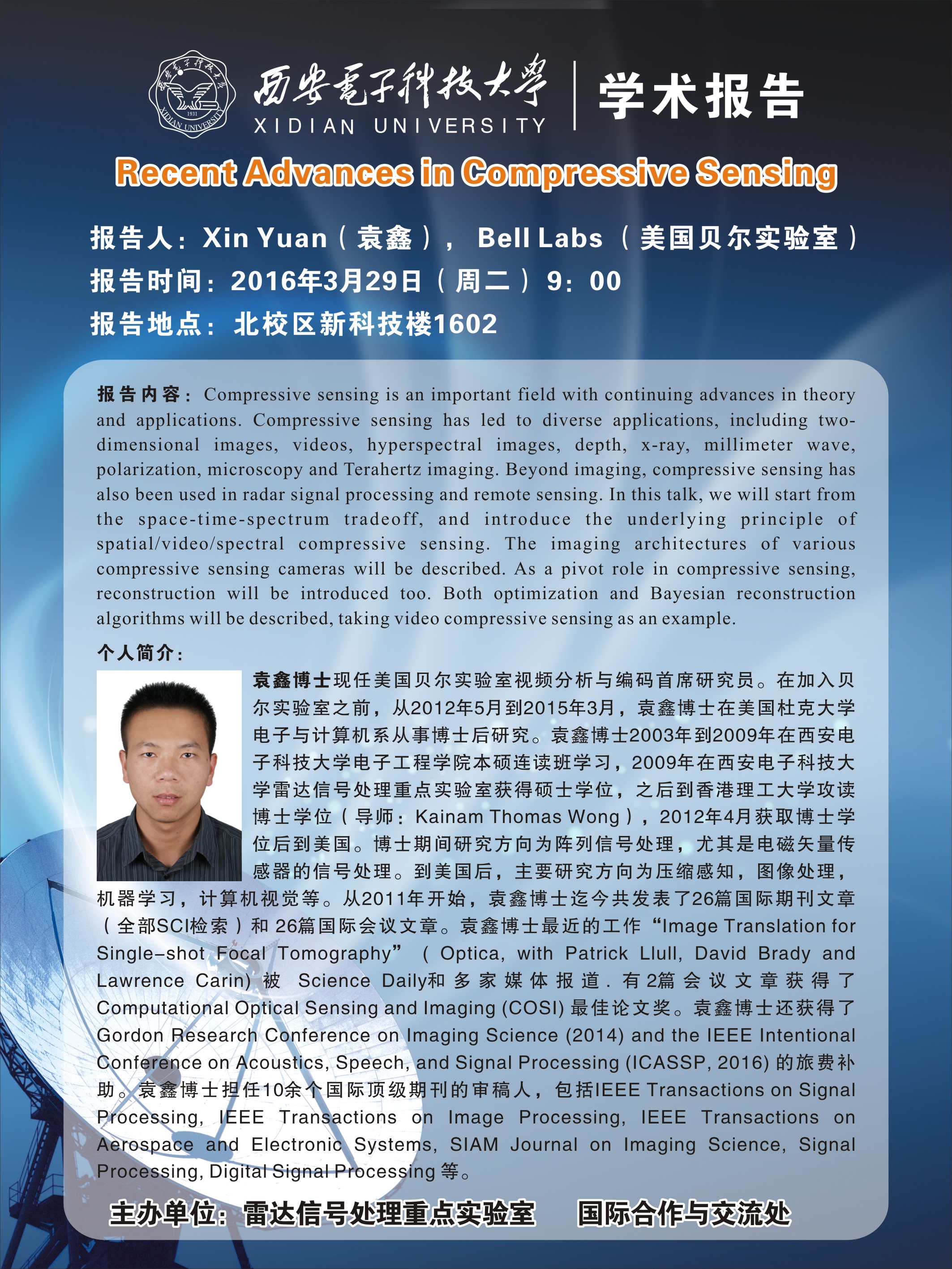 袁鑫博士学术报告2016-03-24 08:35:33浏览次数:上一篇文章:2016年威尼斯9499登录入口二志愿调剂生复试的相关通知下一篇文章: 2016年报考威尼斯9499登录入口硕士研究生复试面试分组安排(已更新)