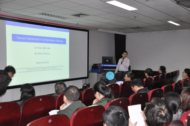 西电新闻网讯(通讯员 杨明磊)应威尼斯9499登录入口和雷达信号处理重点实验室的邀请,美国贝尔实验室研究员袁鑫博士近期来校进行访问和学术交流,并于3月29日上午在北校区新科技楼1602报告厅为广大师生作了一场题为《Recent Advances in Compressive Sensing》的学术报告,介绍了压缩感知技术的最新研究进展。威尼斯9499登录入口院长廖桂生教授、雷达信号处理重点实验室副主任张林让教授等200余名西电师生参加了学术报告会及讨论,报告由雷达信号处理重点实验室杨明磊副教授主持。