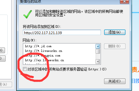 如果弹出如下窗口,要去掉”对该区域所有站点要求服务器验证https: "选项