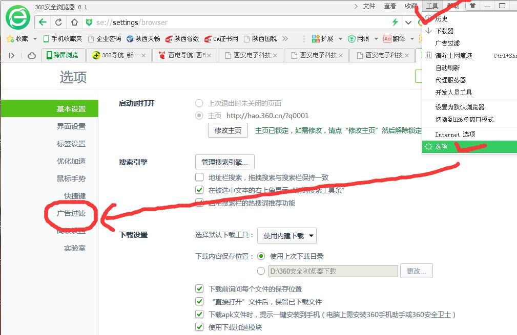 360浏览器无法打开财务处查询系统设置方法