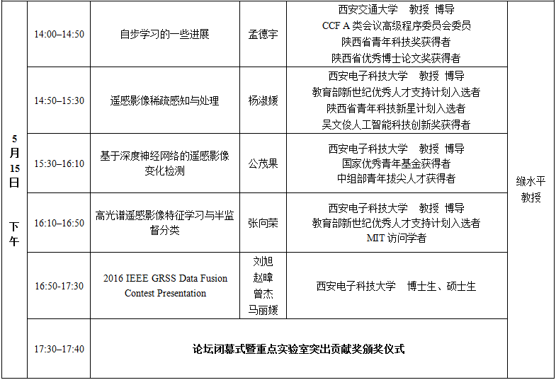 类脑智能与遥感大数据解译国际前沿论坛暨国家空间信息网络重大研究计划高级研讨会日程2016-05-10 16:53:08浏览次数: 报告地点:北校区阶教112 上一篇文章:IE无法打开财务处科研项目和工资详细查询界面-解决方法下一篇文章:威尼斯报告会:数字信号处理在集成电路实现中的优化