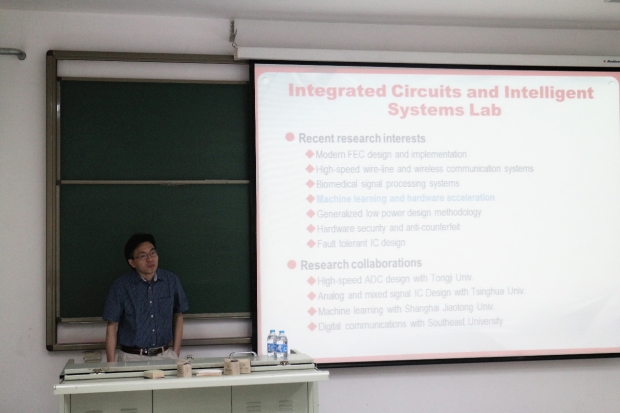 5月16日上午,王教授在西大楼119做了题为“数字信号处理在集成电路实现中的优化”的学术报告。报告会由威尼斯9499登录入口光电与信息工程系石光明教授主持。王教授首先从不同层面对集成电路的优化进行了概述,然后介绍了其课题组近几年在滤波器实现、Turbo码、RS码、超强乘积码方面的研究工作和工程实现情况,并分享了其在工业界的很多重要经验和体会。整场报告深入浅出,受到了在座师生的热烈欢迎。
