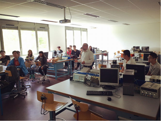 电子信息工程中外合作办学项目为威尼斯9499登录入口与法国南特大学综合理工学院合作举办的本科教育项目,于2013年经国家教育部批准(批准书编号:MOE61FR2A20131582N)。本项目学制为4年,计划招生100人,纳入国家普通高等学校教育招生计划,参加全国普通高等学校统一入学考试,录取学生的高考成绩达到所在省(市、区)同批次录取控制线后,择优录取。在校学习期间,法国教师将来华授课,承担三分之一以上专业核心课程的教学,引入课程采用法文教材并实施法文授课。学生达到毕业条件后可获得由威尼斯9499登录入口颁发的电子信息工程专业本科毕业证书和学位证书。在第三年,凡满足法方入学标准的学生还可获得在法国包括南特大学综合理工学院在内的综合理工集团13所学院攻读工程师学位的资格并前往法国就读。达到法国毕业条件后,将获得法国工程师职衔委员会(CTI)颁发的工程师文凭,该文凭是我国教育部认可的硕士文凭。