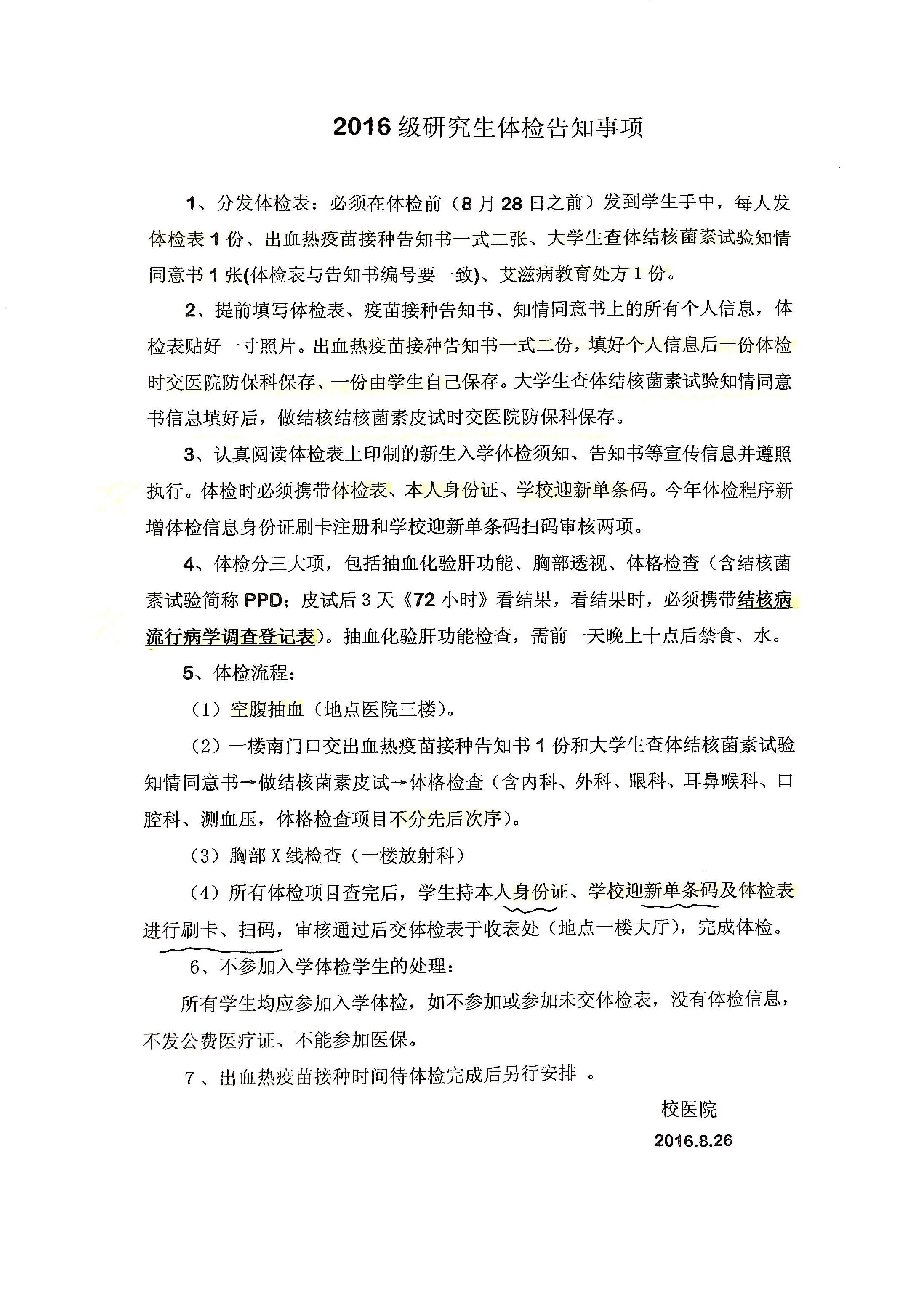 附件4:2016级研究生体检告知事项