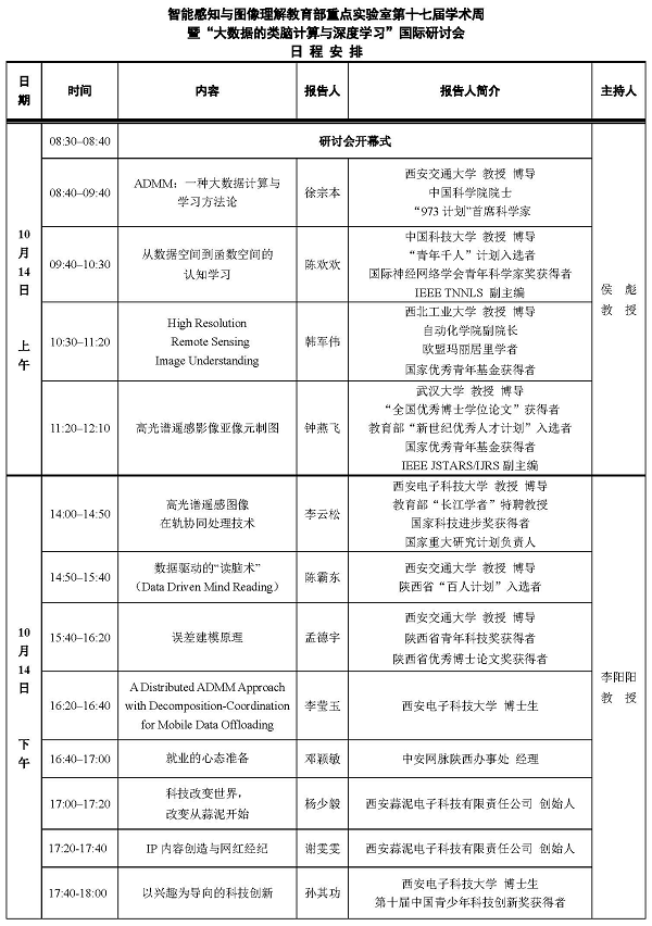 智能感知与图像理解教育部重点实验室第十七届学术周 暨“大数据的类脑计算与深度学习”国际研讨会2016-10-10 20:31:39浏览次数: 报告地点:北校区阶教112 上一篇文章:A Reverberation-Time-Aware DNN Approach to Speech Dereverberation下一篇文章:智能感知与图像理解教育部重点实验室第十七届学术周暨“大数据的类脑计算与深度学习”国际研讨会成功举办