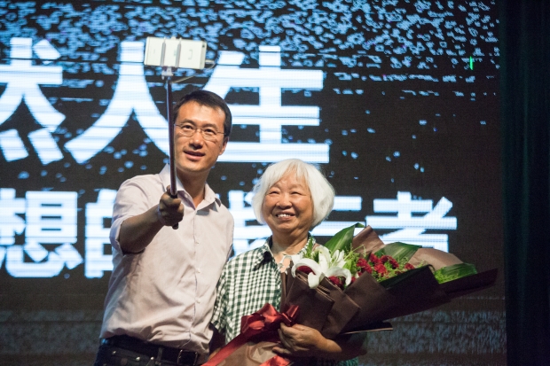 2015年6月华为手机产品线总裁何刚回母校和孙肖子老师合影