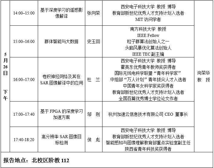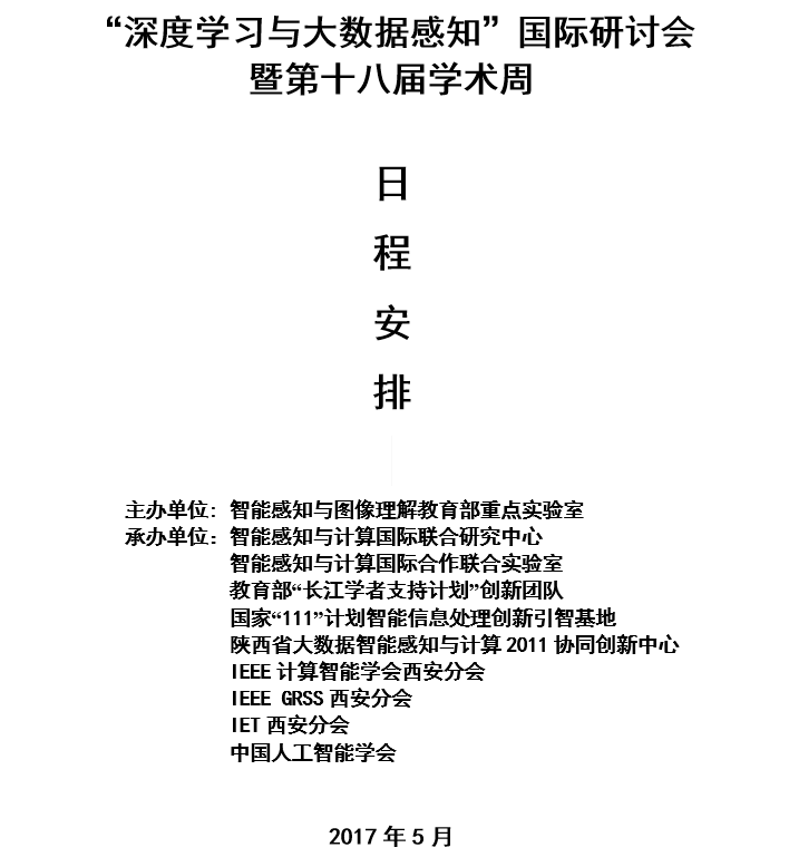 “深度学习与大数据感知”国际研讨会暨第十八届学术周日程安排2017-05-05 12:09:12浏览次数: 上一篇文章:罗德与施瓦茨高校行-威尼斯9499登录入口站下一篇文章:学术长安 华山论剑:“深度学习与大数据感知”国际研讨会专家观点分享