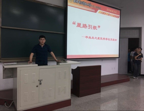 活动中,三位优秀毕业生分别从专业学习、科技创新及竞赛、丰富课余生活以及要在大学中学会做人做事四个方面为大一同学做了经验交流。交流过程中,三位优秀毕业生语言朴实,贴近同学并结合自己身边发生的具体事例,使在座的同学产生强烈的共鸣,交流过程中掌声频频响起,同学们在此次交流中都有所感触和收获。
