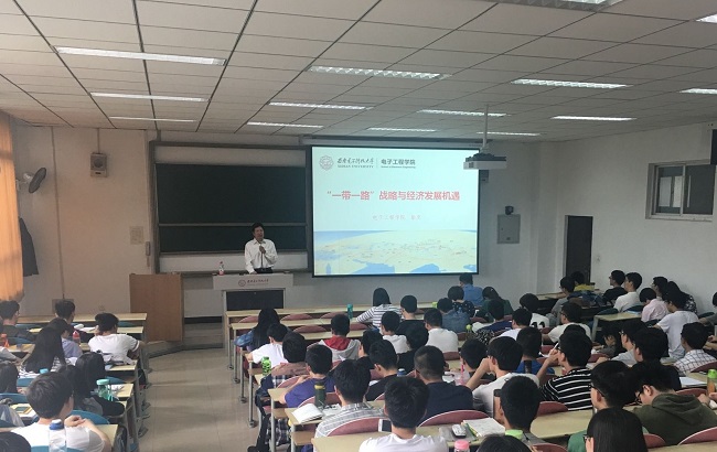 “‘一带一路’国际合作高峰论5月14至15日在北京举行,有29位外国元首、政府首脑及联合国秘书长、红十字国际委员会主席等出席高峰论坛,来自130多个国家的约1500名各界贵宾作为正式代表出席论坛,来自全球4000余名记者报道此次论坛。”徐克书记以这场中国重要的主场外交活动为切入点,通过介绍丝绸之路历史价值、战略需要向同学们讲述了“一带一路”的时代背景和重要意义。