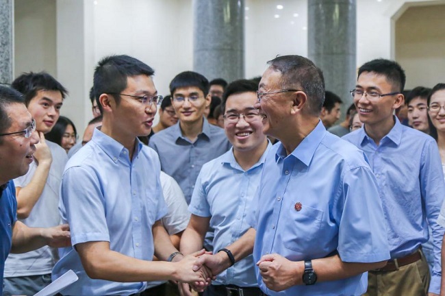 8月20日,结束了西商大会两天密集行程的柳传志重回母校,看望在校期间指导员,为创新创业学生代表鼓劲,并受聘为西电创新创业学院名誉院长。党委书记、校长郑晓静院士,党委副书记龙建成陪同行程。